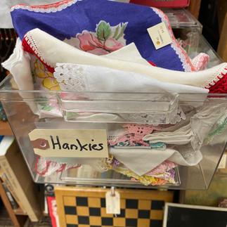 The question I am asked most frequently is "where do you get the handkerchiefs?" The answer is everywhere! Yard sales, thrift shops, estate sales, and antique co-ops to name a few. We recently thrifted along Route 1 in Maine, from Arundel to York, spending the afternoon checking in to a few of our favorite shops. See the gallery below of some hankies spotted for sale.